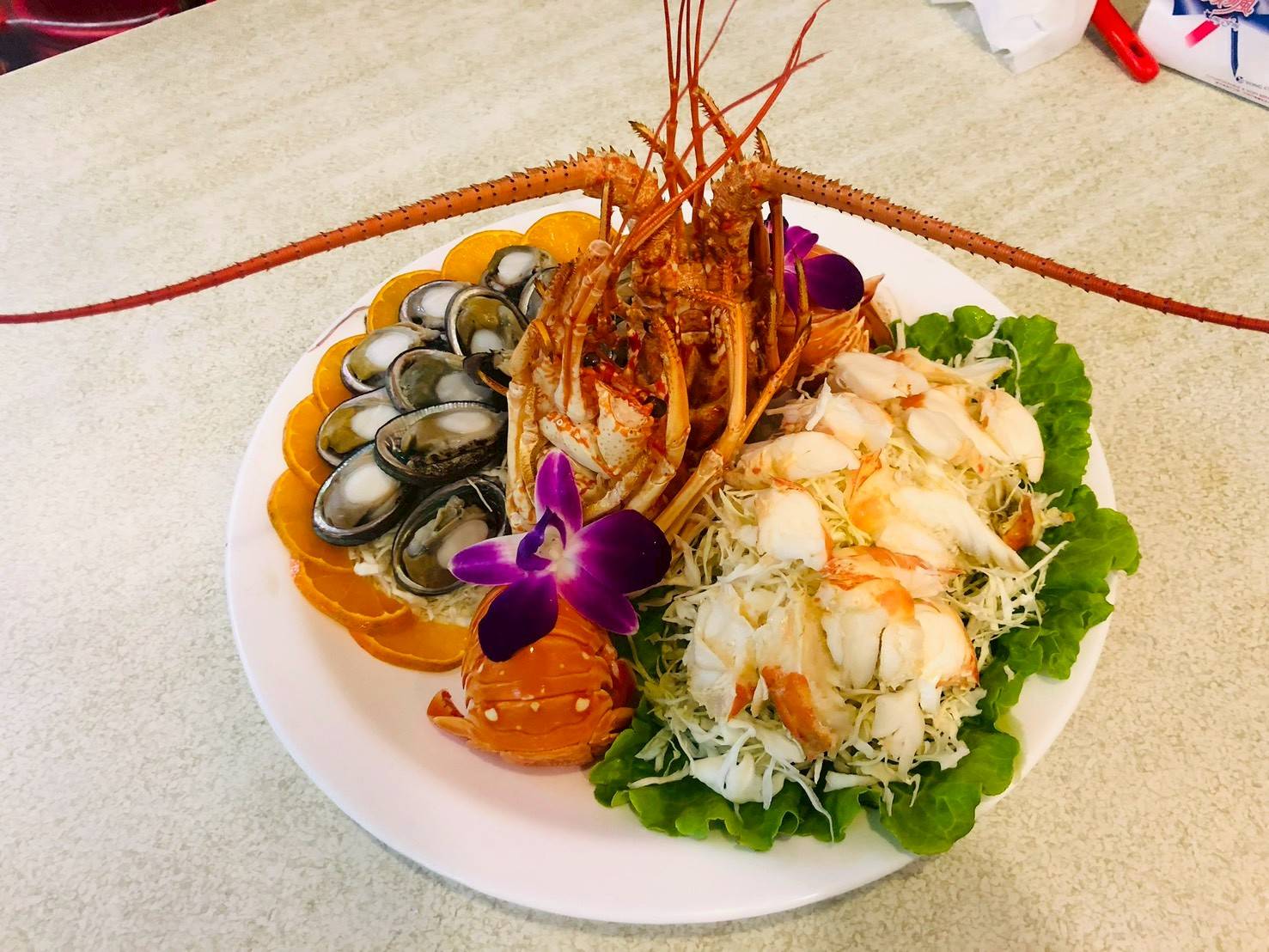 活體現撈,搭配蔥油/沙拉/生吃三選一, 蔥油爆香融入肉質, 沙拉香甜開胃下飯, 生吃龍蝦原本鮮味, 不管哪種都能讓您吮指回味無窮~